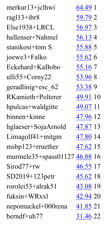 | 20 | Fr. Böttger - Hr. Runge | 42.94 | ||||
