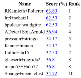 | 2 | Fr. Coe - Hr. Schatz | 62.50 | 10 | |||
